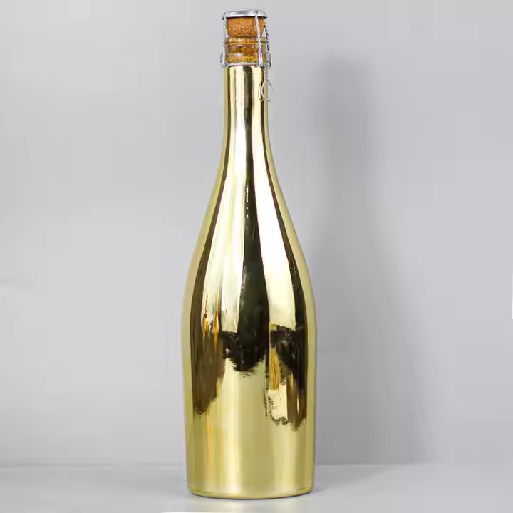 Customized 750ml Electroplated Gold Empty Spirits Vodka Gin Champagne Liquor Glass Bottle